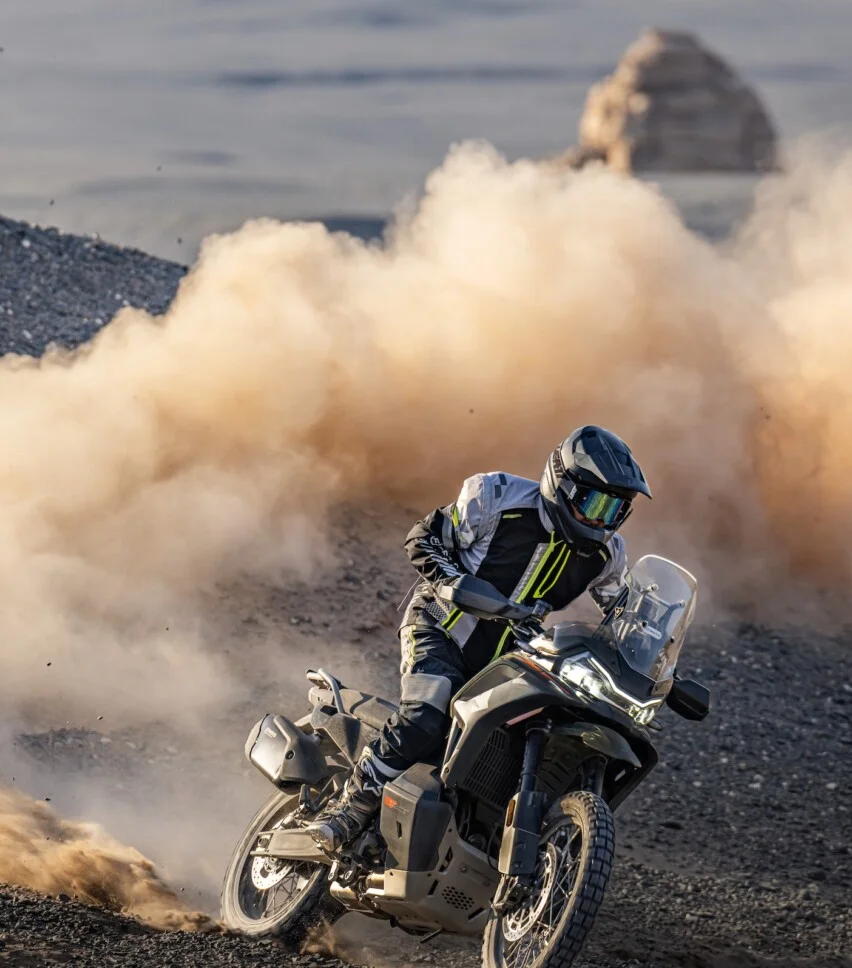 1000MT-X přímo vybízí k cestě mimo silnice. Informace o tlaku a teplotě pneumatik upozorní, když něco není v pořádku. S obousměrným Quickshifterem využiješ motorku naplno. Antihoppingová spojka tě podrží, když budeš trochu hulvát. Když budeš ambiciózní, podrží motorku kryt motoru. A vodítko řetězu, aby nebyl nějaký ten „kousanec“.